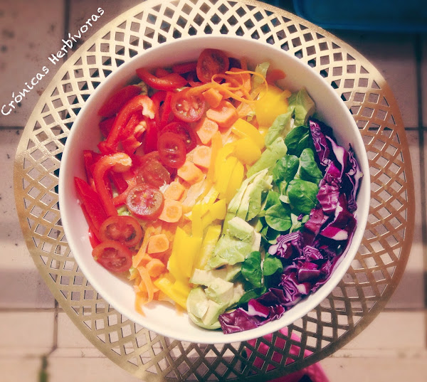Simplemente tenéis que seguir los colores del arcoiris y si os falta algún ingrediente o no os gusta, lo podéis sustituir por otro diferente del mismo color.