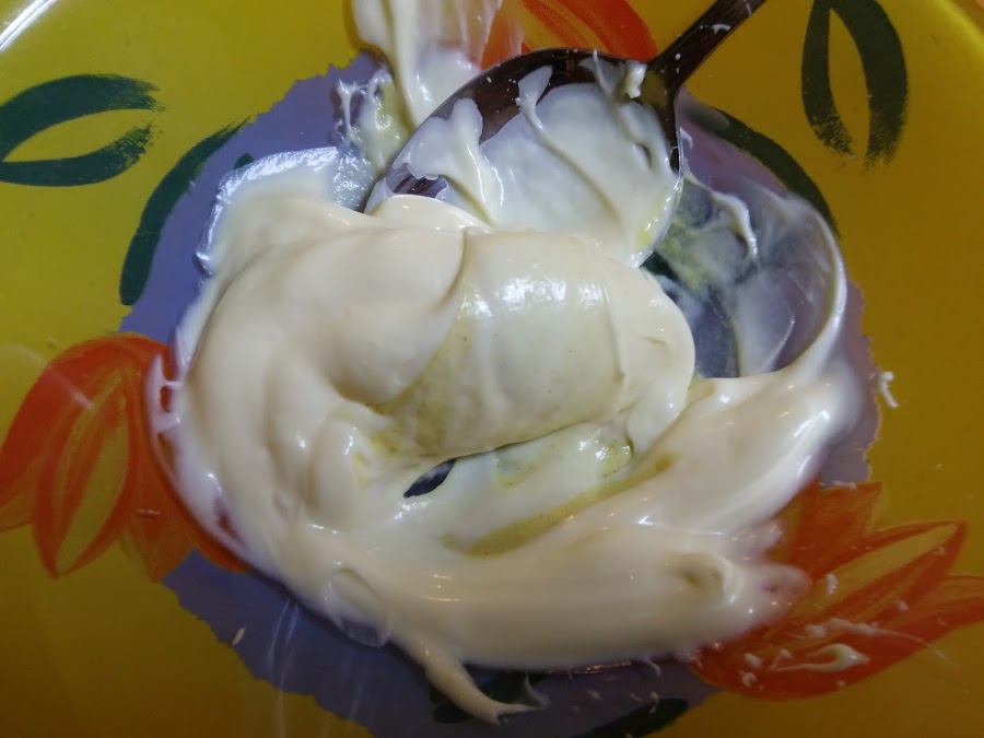 En un bol vamos a mezclar la mayonesa y la mostaza de Dijon.