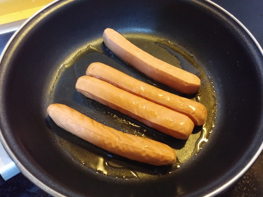 Ahora vamos a saltear las salchichas en una sartén con un poco de aceite.