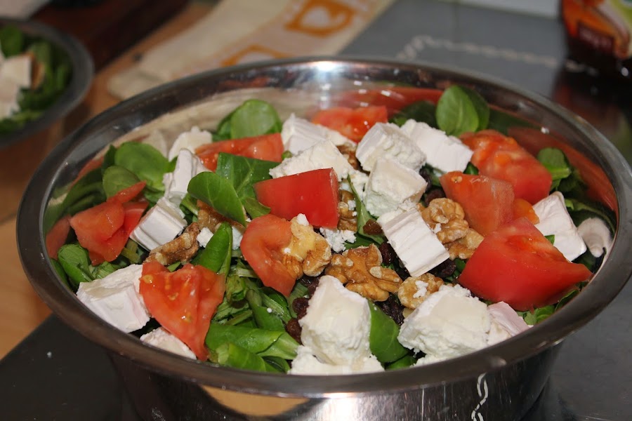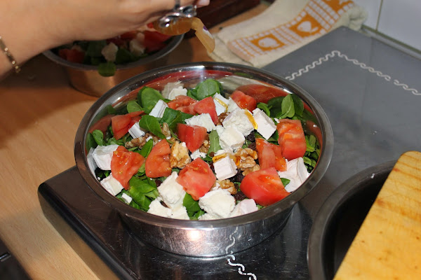 en un bol echamos la sal, aceite y vinagre, removemos e incorporamos la mezcla a la ensalada. ¿facil ehh? Pues ya solo queda disfrutar de nuestra ensalada "Amparo"