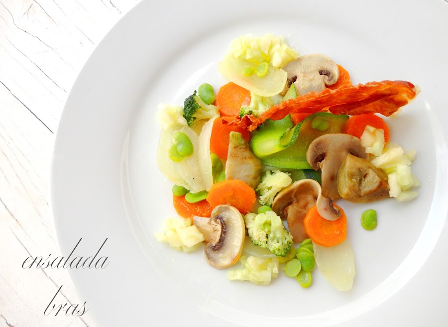 Cuando lo descubrimos en casa en un documental sobre su restaurante en Laguiole, nos quedamos tan fascinados que desde entonces hacemos una ensalada a la que bautizamos entre risas como "bras"...