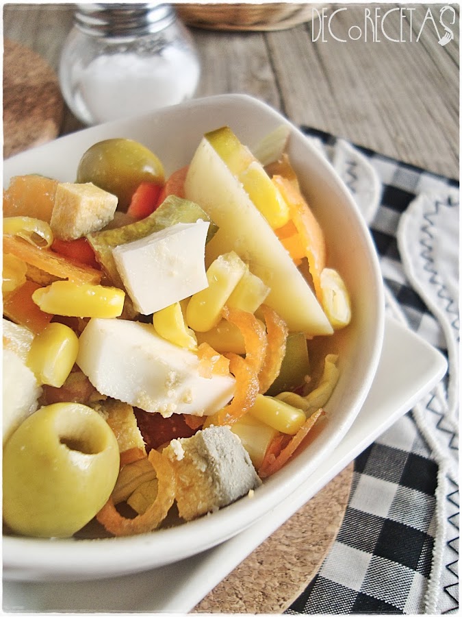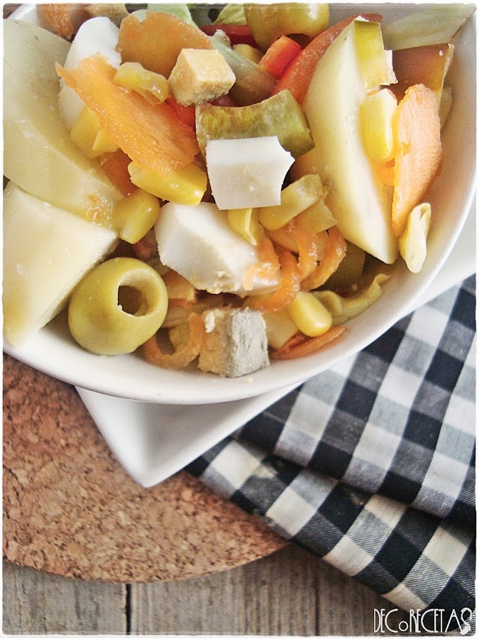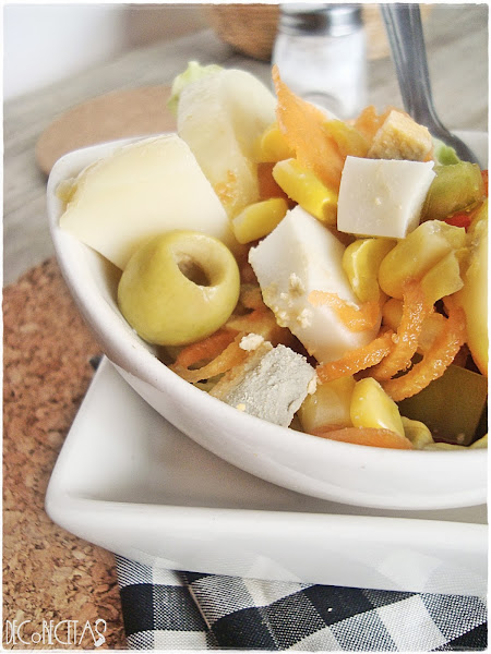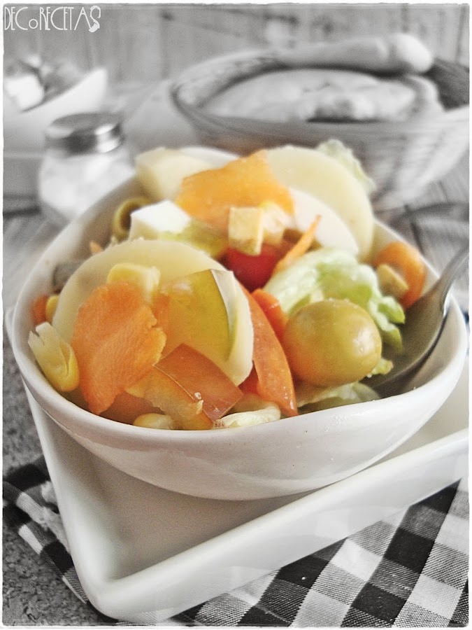 La ensalada campera en realidad podéis hacerla con lo que queráis sin problemas. Para la próxima añadiré palitos de cangrejo, pepinillos...