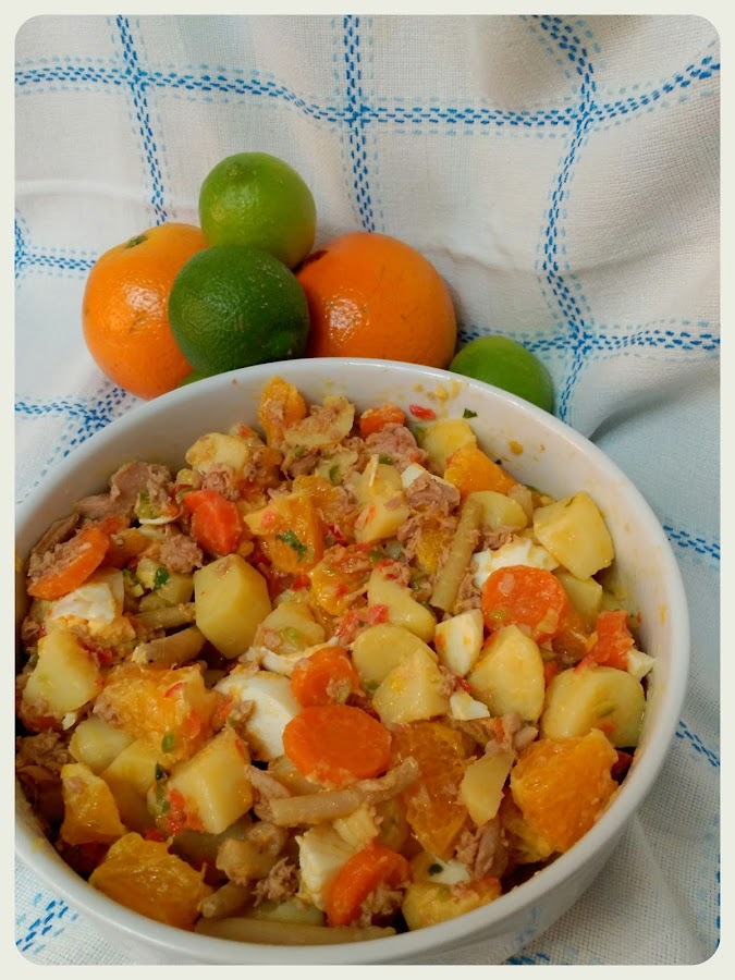 3 NARANJAS PELADAS SIN NADA DE PARTE BLANCA Y CORTADAS EN TROZOS COMO LA PATATA