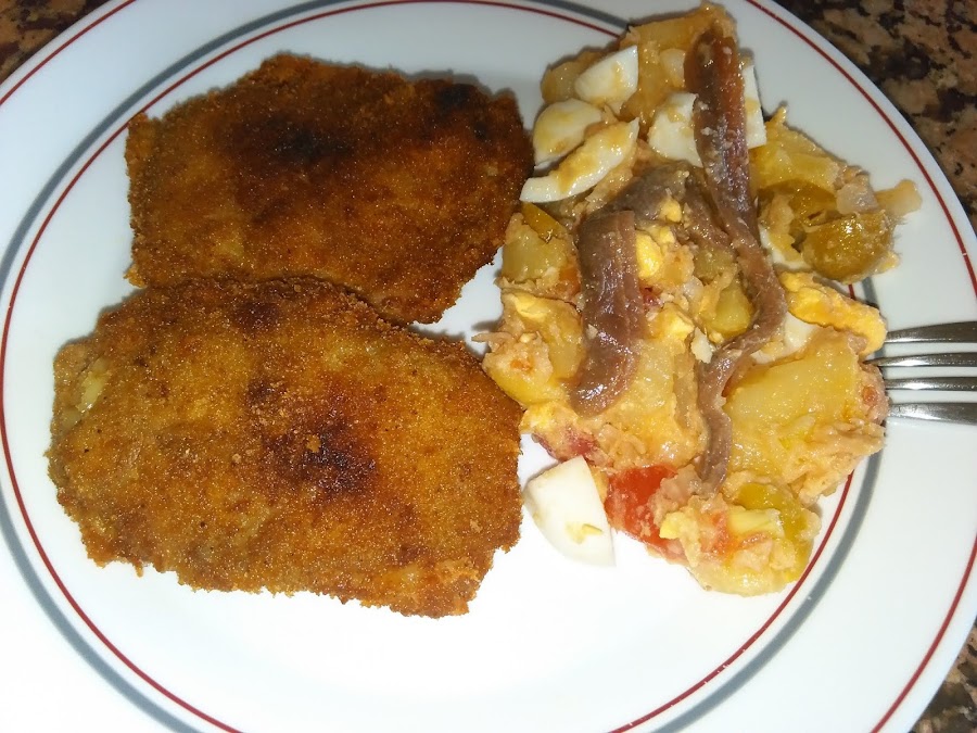 Esta ensalada sirve como plato único o es ideal para acompañar a un segundo, en este caso eran SAN JACOBOS DE BERENJENA