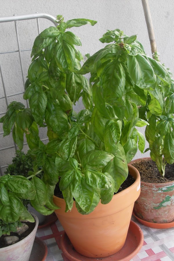 La albahaca la tengo en una maceta en mi balcón.
