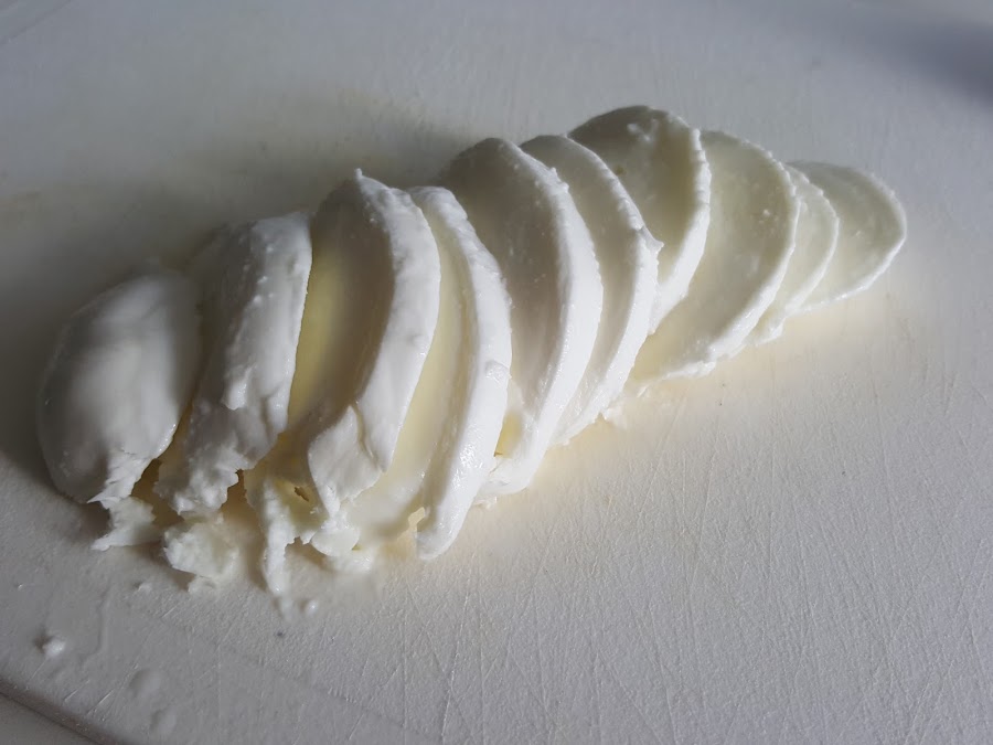Esta mozarella es de búfala, y os aseguro que, aunque cuesta el doble, merece la pena, veréis su textura y su sabor.