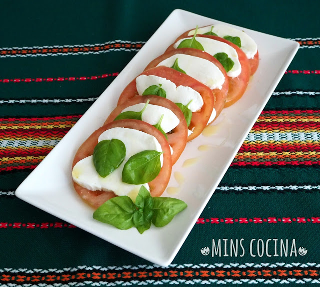 Parece que ya sí vuelve el calorcito para quedarse y qué mejor que una deliciosa ensalada para refrescarse. Ésta de hoy es todo un clásico de la cocina italiana y también en mi casa, donde la comemos a menudo cuando llega el buen tiempo. Además de estar buenísima es ideal por su fácil y rápida preparación. Con solo tres ingredientes más un aliño rápido tenemos una ensalada para mí perfecta: la combinación de los sabores es simplemente maravillosa. Ideal para una cena ligera o como entrante.