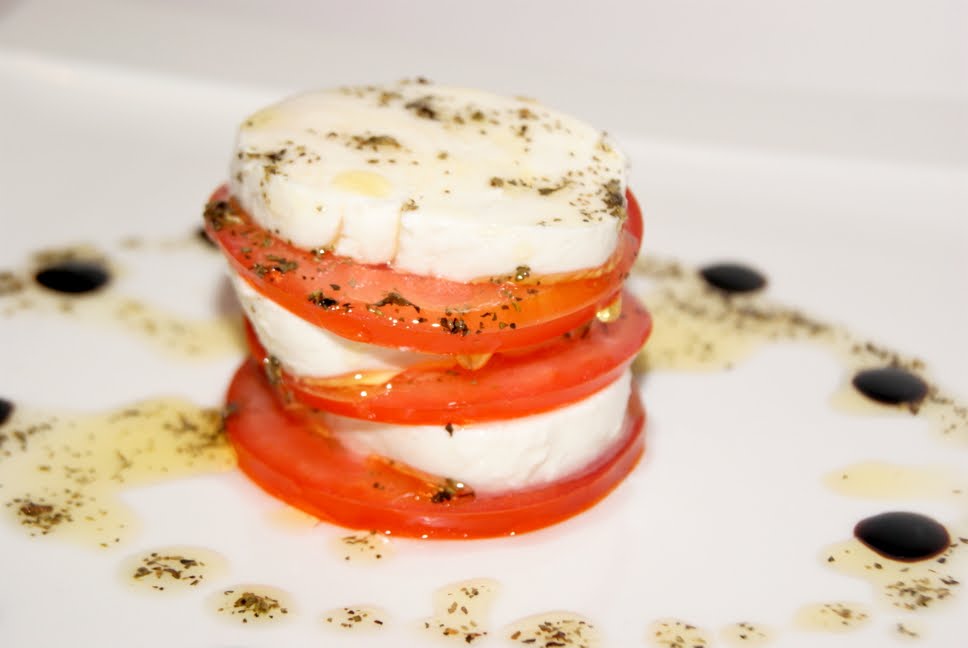 - Ponemos en el plato intercalando al gusto, aliñamos con el aceite mezclado con la albahaca y la crema de vinagre.