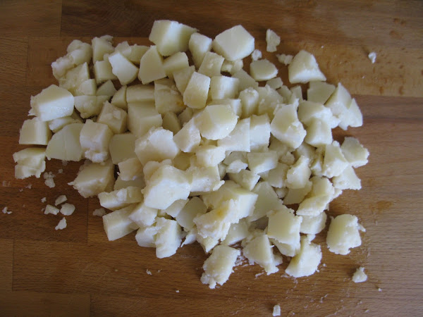 Trocear las patatas cocidas