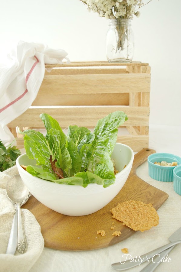 Place Parmesan cheese in flatten discs, 2-inch coins size,and bake in the same temperature until melted and golden for 3-5 minutes. Cool and break into pieces. (You can reserve some without breaking).