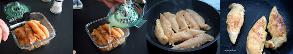 Colocar la pechuga de pollo, mejor en tiras gruesas y largas, en un recipiente ajustado. Salpimentar y añadir una cucharadita de salsa Worcestershire y el zumo de medio limón. Repartir bien y dejar reposar unos 20 minutos.