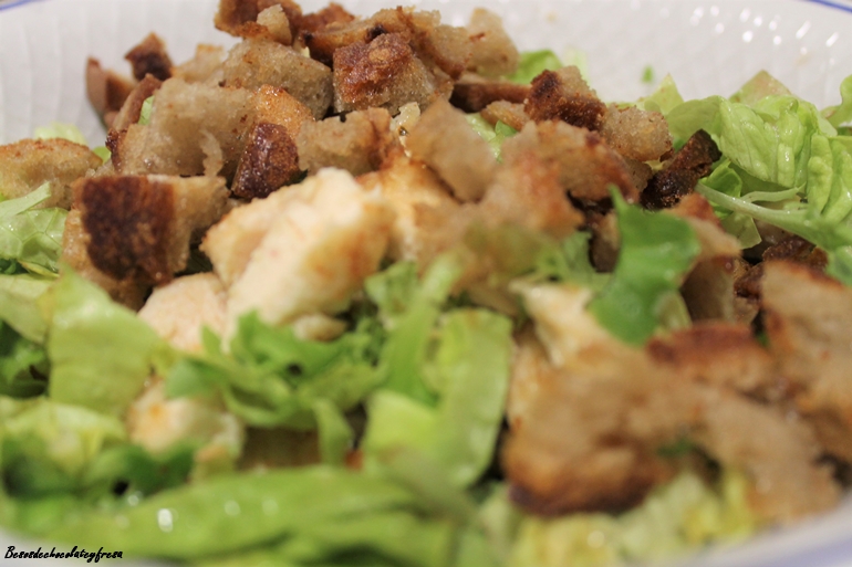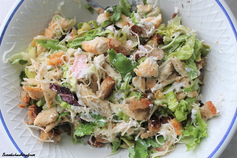 Una de las peculiaridades que tiene la ensalada César es que no lleva pollo, pues esta receta de trata de una versión más moderna en la que se empezó a añadir este ingrediente, y que es la que os muestro en la receta de hoy.