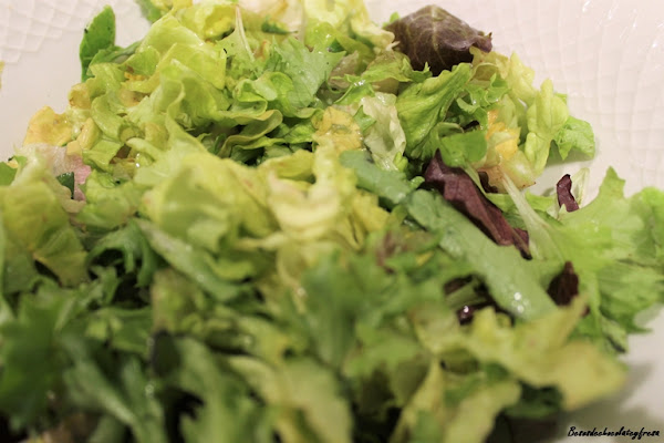 Freimos los filetes y cortamos en trozos mas o menos pequeños, y añadimos a la lechuga. Revolvemos y mezclamos bien