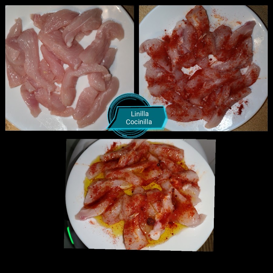 - 200 grs de pechuga de pollo sin piel en tiras finas