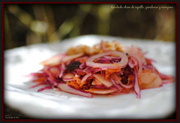 Ahora une todos los vegetales en una ensaladera grande, agrégale las uvas pasas y las nueces previamente picadas en trozos pequeños, aliña con el aceite, el vinagre, la canela y la sal, revuelve bien y sirve en porciones individuales, un entrante ideal y riquísimo con un toque agridulce maravilloso!! Con una vino blanco helado está delicioso!!