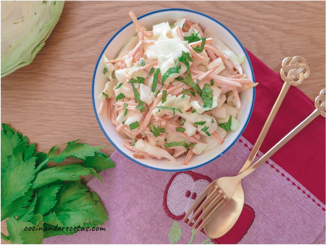 Aunque la receta original solo incluye col y zanahoria , se pueden hacer versiones de esta deliciosa ensalada añadiendo otros ingredientes de nuestro gusto como por ejemplo una manzana rallada, jamón, incluso una poco de col morada para darle un toque de color diferente.ENSALADA COLESLAW