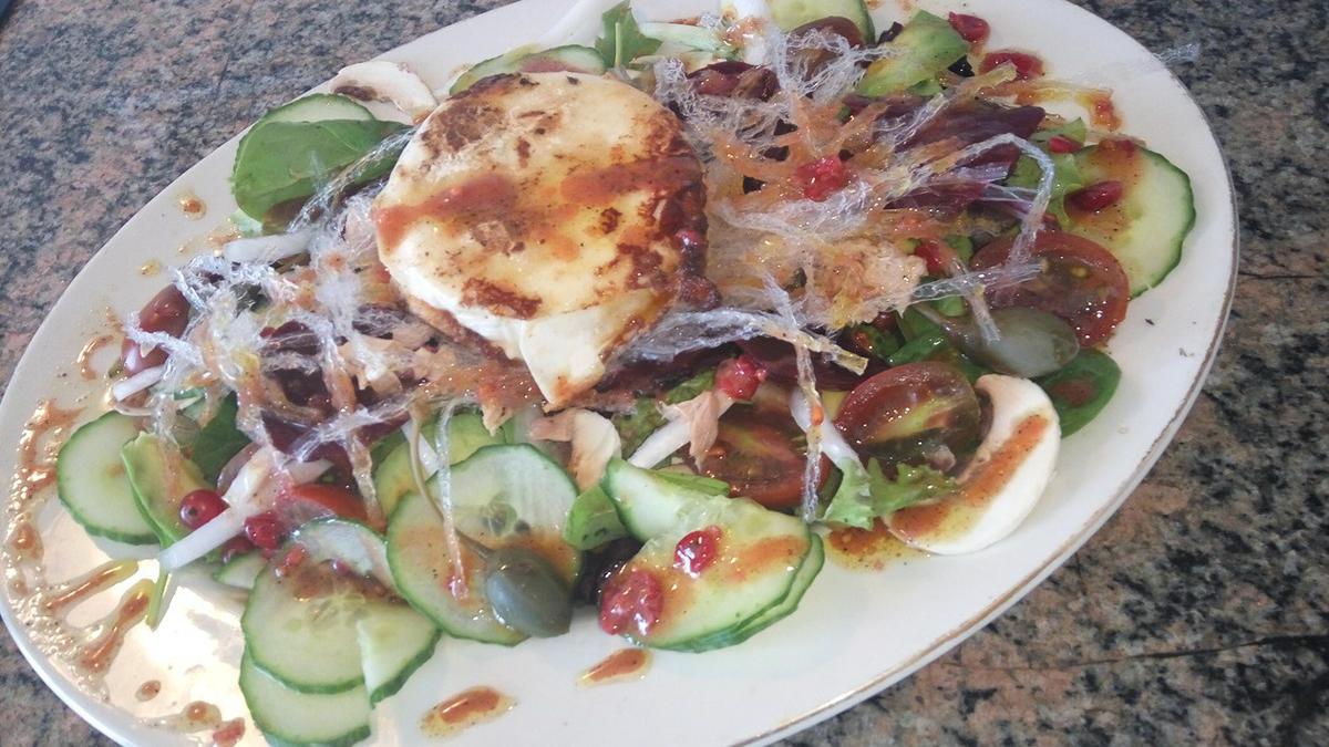 En éste caso, la vinagreta de mostaza y grosella le da un toque ácido/dulce que lo hace delicioso. Éstos sabores unidos al resto de ingredientes ,especialmente con el queso de cabra, potencia el sabor a niveles prohibidos !