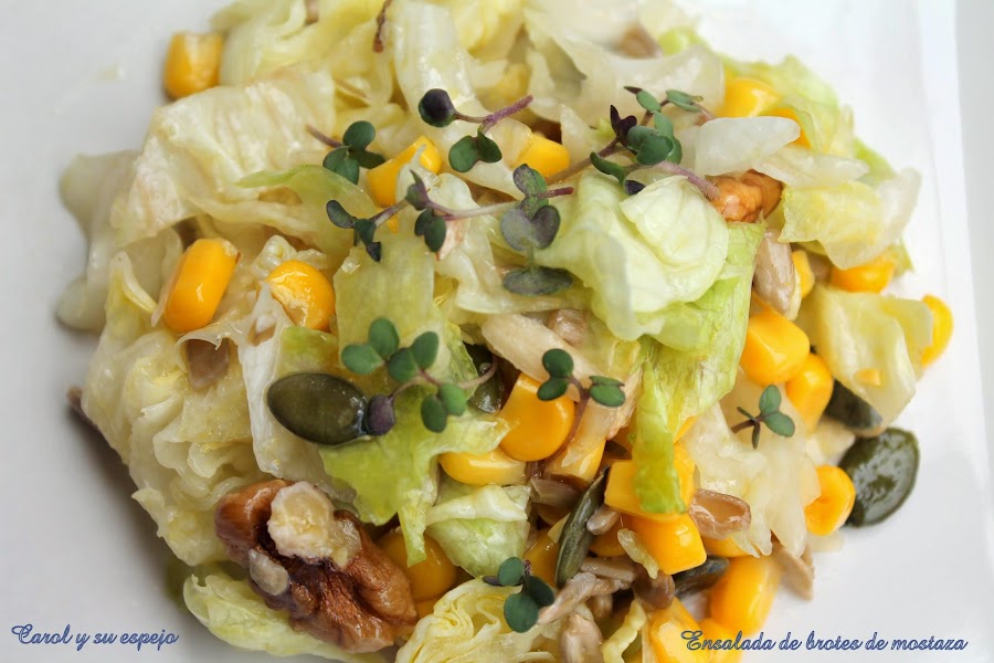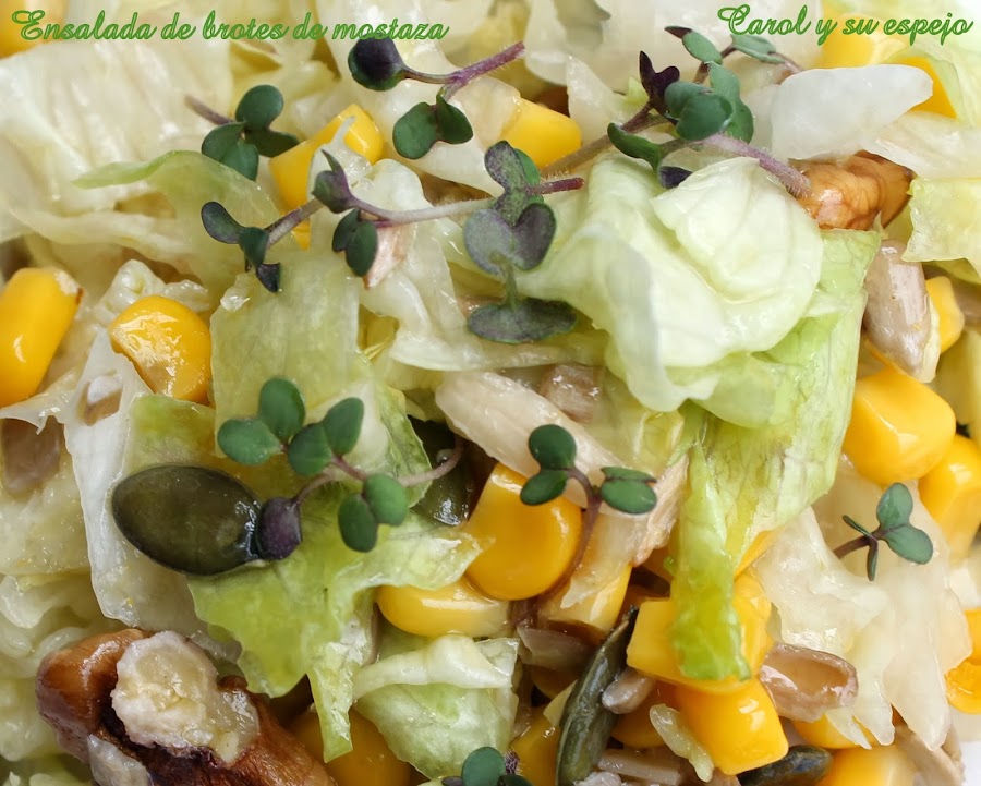 Y con el trozo de papel germinado, nos dice que con prestarle un poco de atención: humedecerlo durante cinco días y luego ponerlo en una zona donde le de el sol tendremos unos brotes de mostaza que nos servirá para aderezar una ensalada.