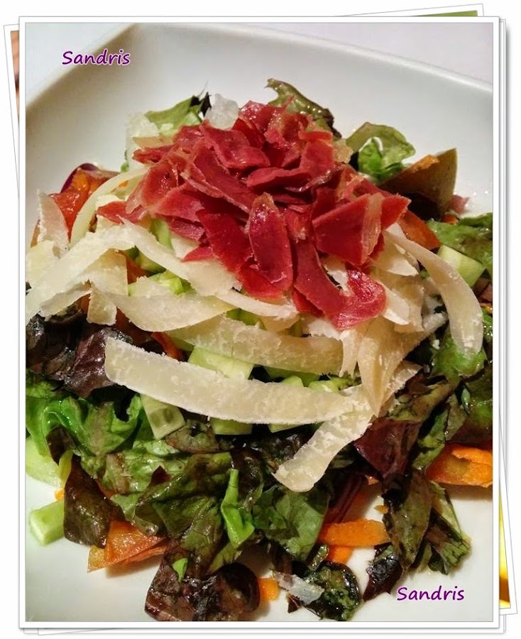 ¡Hola! ¿Cómo habéis pasado la Noche Buena y Navidad? Bueno las fiestas nos dan un respiro y continuamos con las recetas. Hoy os traigo el entrante del menú 2. Una ensalada con pescado, para compensar un poco el atracón de estos días, ¡Que tenemos que llegar a fin de año vivos! Ingredientes: - Medio salmón fresco. - Rúcula, escarola y canónigos. - Grana Padano. Para la vinagreta: - 1 limón. - ...