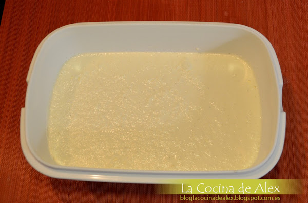 Ponemos la mezcla en un recipiente que podamos tapar y lo metemos en el congelador 1h30min removemos con una varillas para quitar el hielo que se haya formado y volvemos a meter en el congelador durante 1h30min más. Si el helado lo vamos a usar otro dia lo unico que tenemos que hacer es sacar el recipiente del congelador 1h antes de su uso para que podamos manejarlo sin problema.
