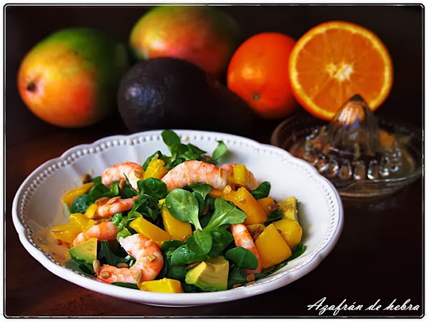 Cortar el aguacate y el mango en dados, pelar los langostinos.