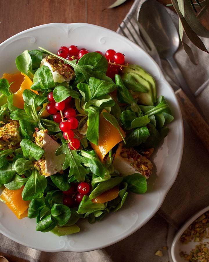 ¿Queréis darle un toque más sofisticado y navideño a la ensalada? Esta Ensalada con mango, aguacate y queso de cabra es para vosotros