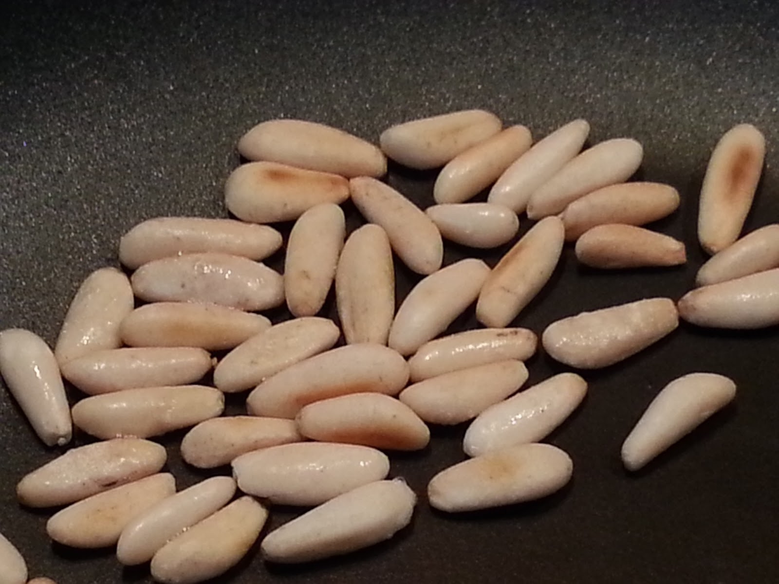 2. - En una sartén pondremos a tostar los piñones. Mientras encencemos el horno con el gratinador a temperatura máxima.