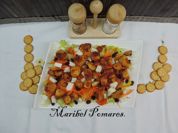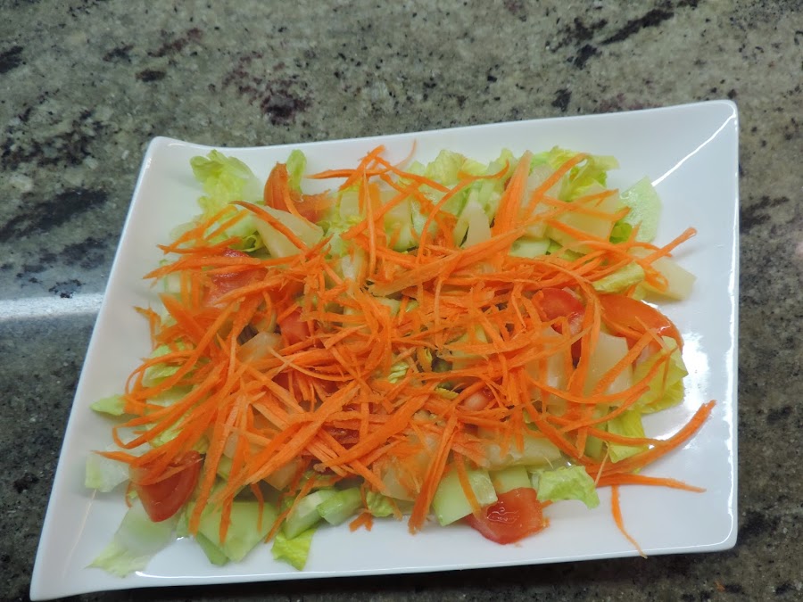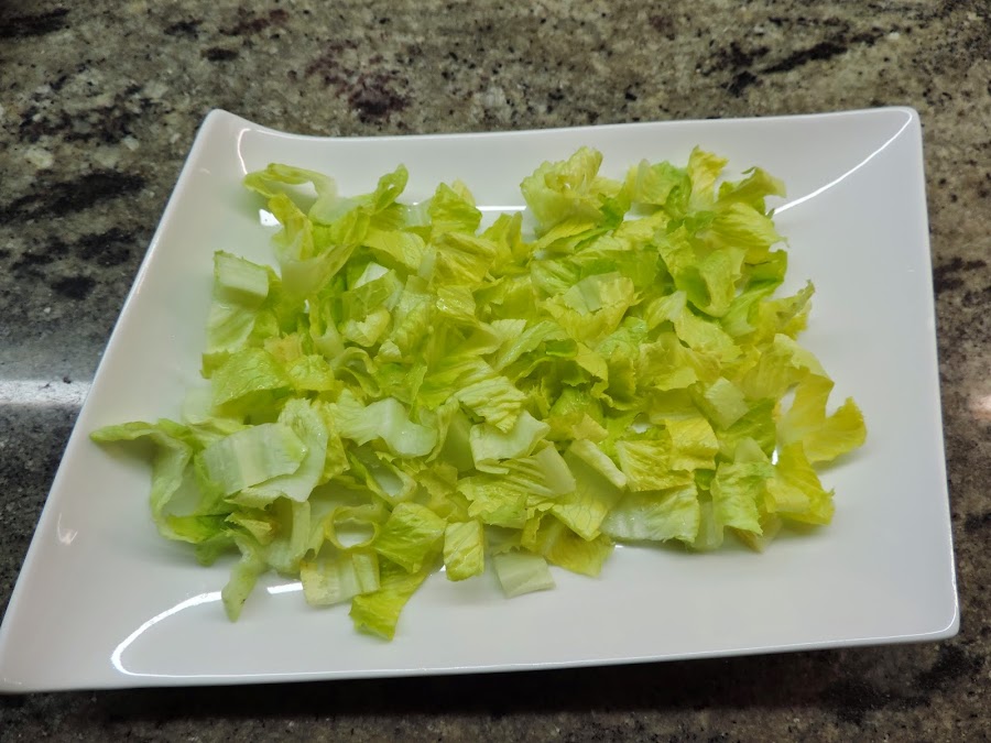 Mientras cortamos la lechuga y la ponemos en la fuente de servir.