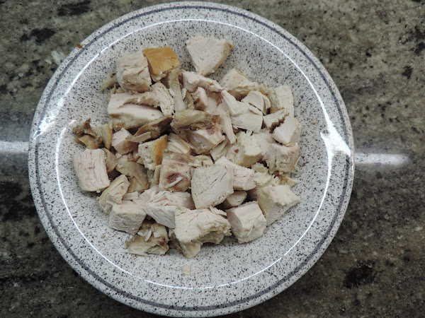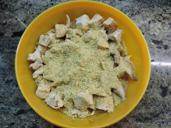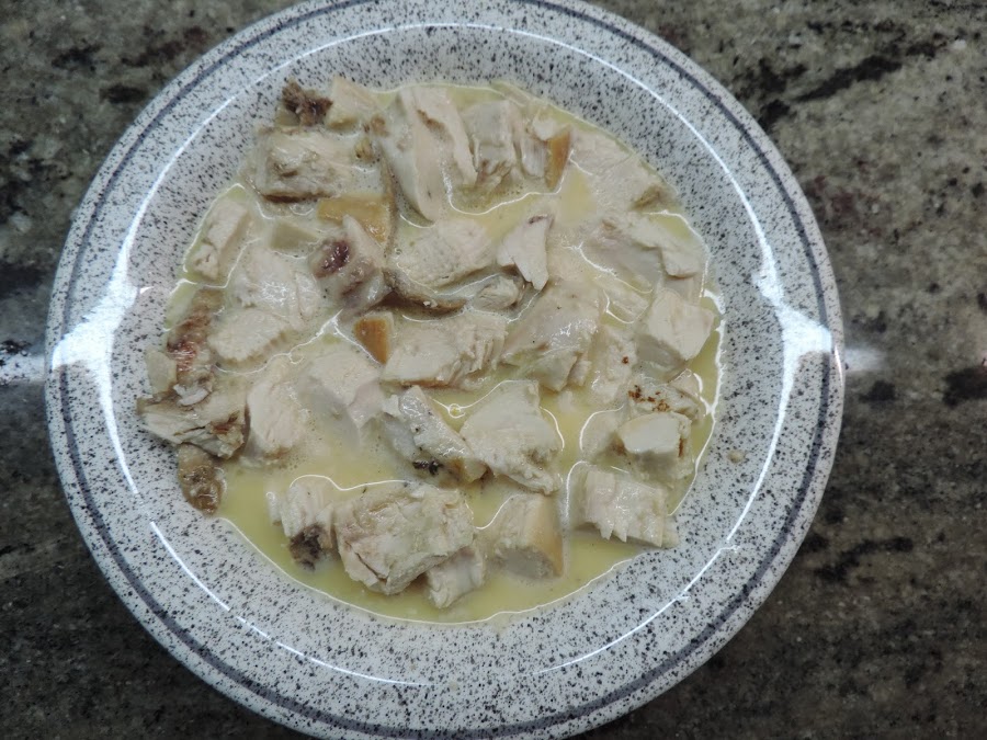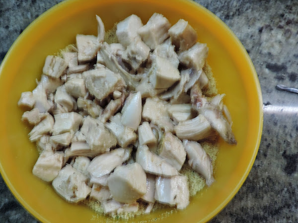 Echamos la pechuga de pollo asado que teníamos en el huevo batido.