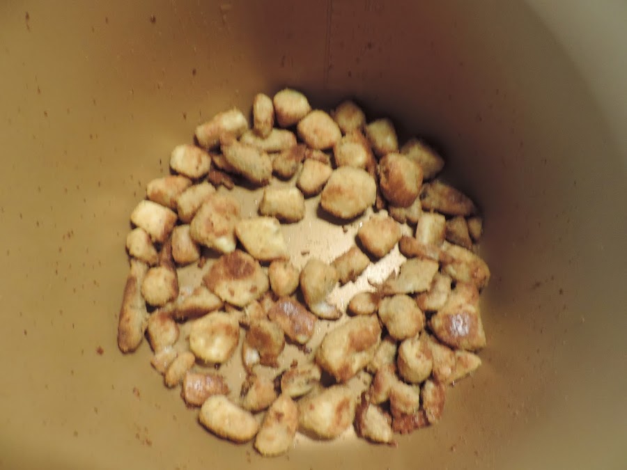 Removemos bien para que se moje bien con el aceite que habíamos puesto es la cubeta de la olla. Ponemos la tapa doradora 15 minutos, 175º.