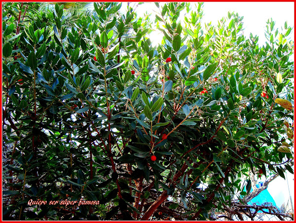 Vivo justo a unos 100 metros de un paraje natural protegido llamado Macizo del Garraf. En la parte de suelo más húmedo se dan muy bien los madroños . El madroño es un arbusto que puede llegar a coger una altura considerable si tiene buena tierra y suficiente agua. De hojas verde oscuro brillante y frutos rojos muy dulces cuando maduran, son una atracción irresistible para los pájaros y todo tipo de insectos. Lo sé muy bien, entre otras cosas, porque tengo uno en el jardín de casa del cual puedo recolectar algo siempre y cuando sea más rápida que mis vecinos con alas.