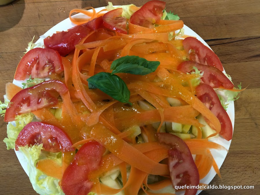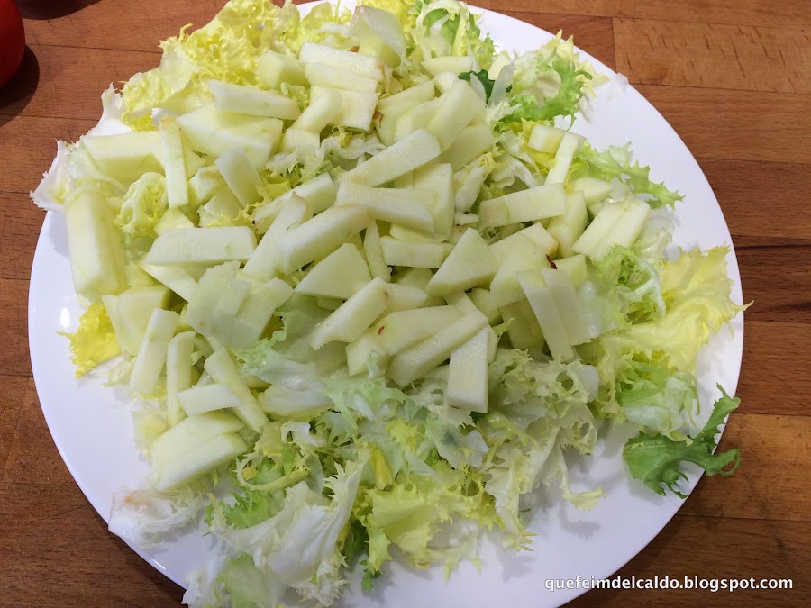 La ensalada que vamos a realizar hoy es una muy sencilla, compuesta por ingredientes que todos tenemos en casa, esta ensalada la aliñaremos con una vinagreta de manzana.