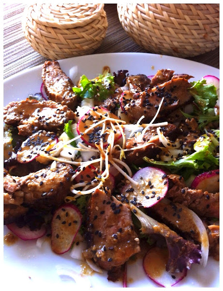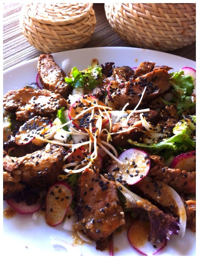 Buscando diferentes tipos de cocina encontré la Coreana y entre sus platos más típicos se encuentra el Bulgogi que son finas tiras de carne de vacuno marinadas en una mezcla de soja, azúcar, aceite de sésamo y otros ingredientes. Se puede cocinar a la parrilla o asarla incluso freirla? Se come envuelto en una hoja de lechuga.