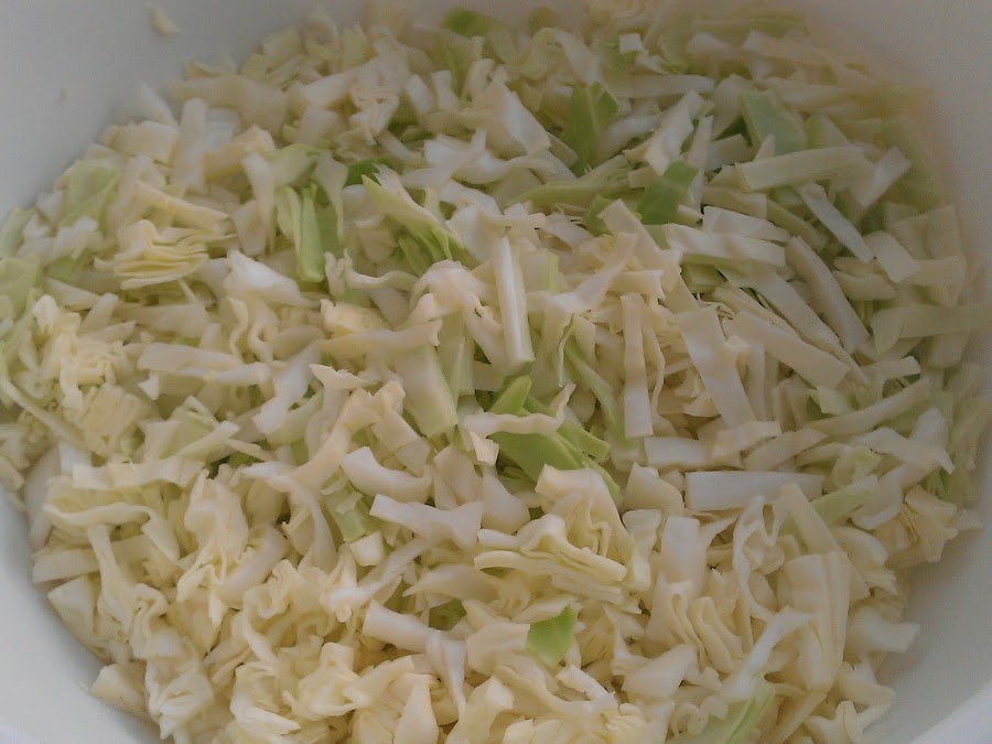 1. - Lavar bien la col y cortarla en tiras lo más fina que podamos, y las ponemos en un bol.