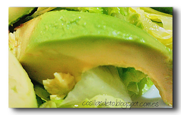 ponemos una capa de lechuga ,los gajos de aguacate encima,