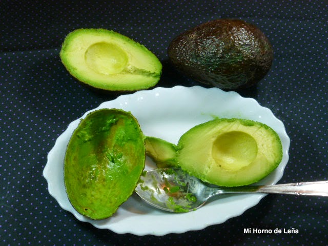Cortamos los aguacates por la mitad (a lo largo) y retiramos el hueso y la carne. Con cuidado de no romper la piel, ya que está hará de plato para la ensalada.