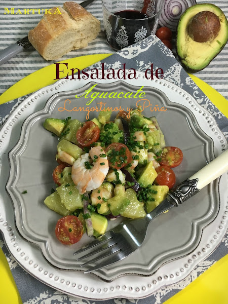 Se pican los aguacates, la piña y los langostinos en dados, reservando 4 langostinos para decorar cada plato.