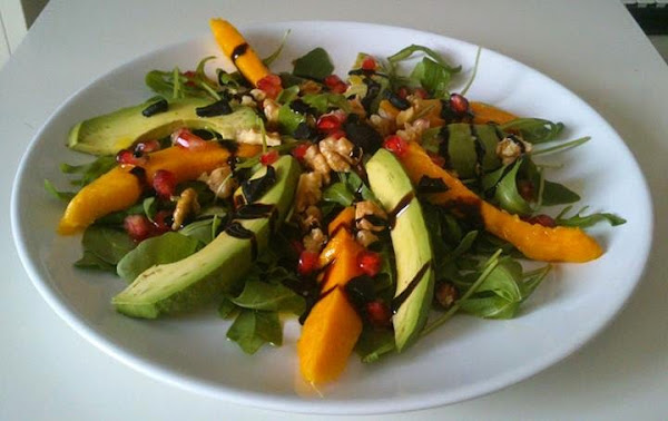 Ensalada de nueces, aguacate y mango.