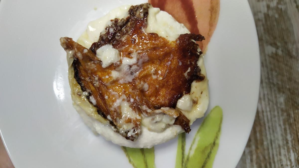 Pongo un poco de aceite en una sartén, cuando esté muy caliente le pongo el queso de cabra y enseguida le doy la vuelta, que se dore un poco.Puse el aro y fui rellenando con la mezcla anterior. En un lado puse los tomates cherrys y los canónigos.