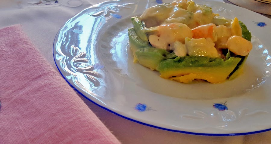 Cortar el resto de los aguacates y los langostinos en cubos pequeños,el cebollino muy picadito, añadir en el bol de la salsa.
