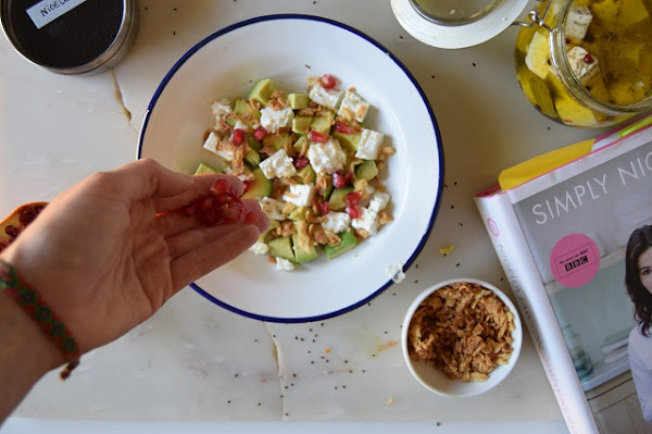 Como casi todas las ensaladas esta es tremendamente fácil de hacer. Con tener un cuchillo y un mano con movilidad ya es suficiente. Y todo el mundo parece satisfecho al comerla. Un amigo la describió como una ensalada "muy técnica" y por exótica que parezca jamás nadie ha objetado nada en contra de la nigella, ni siquiera aquellas personas que te sacan tarjeta roja en cuanto mencionas a mis amigas las especias. No es fácil encontrar Nigella en el supermercado, yo la compro por Internet, creo que merece tremendamente la pena hacer el esfuerzo pero si no la tienes no pasa nada, el aguacate, el queso feta y la cebolla son un trio con el que disfrutareis seguro.