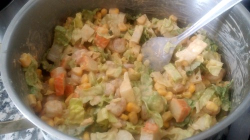 Echamos la salsa al bol junto con los demás ingredientes y lo mézclalos todo bien.