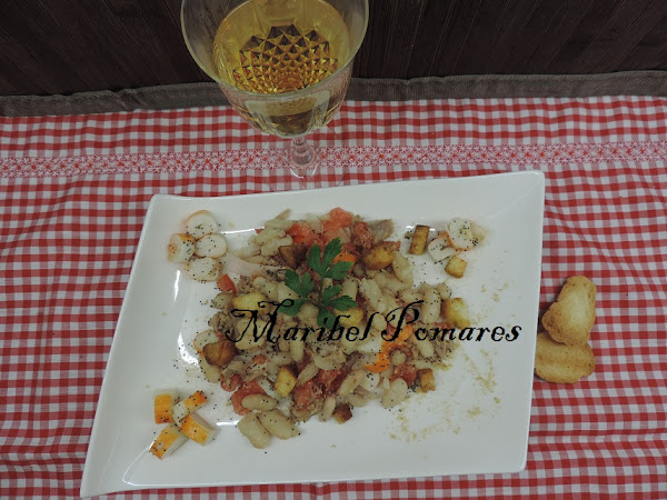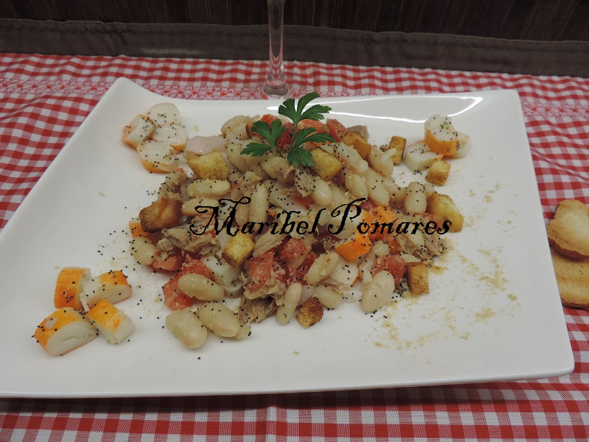 Aliñamos con aceite, vinagre y sal, mezclar.