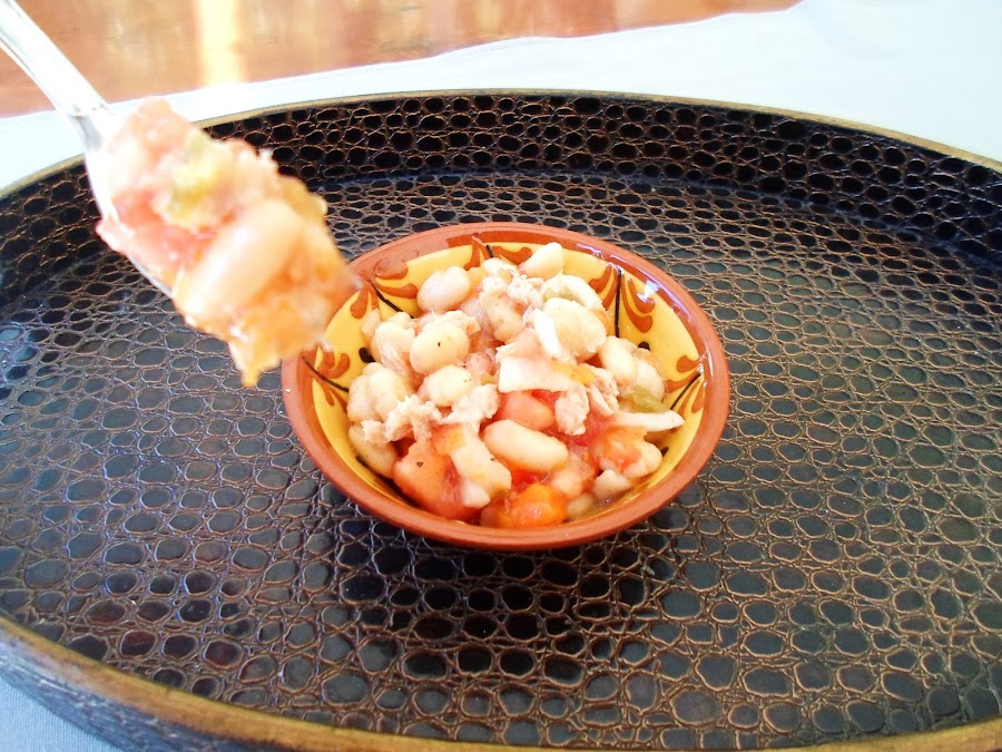 Enjugamos las alubias y las ponemos en un cuenco. Lavamos y cortamos en trozos los tomates. Troceamos la cebolla. Añadimos estas verduras a las alubias. Agregamos un chorrito de aceite, zumo de limón, sal y pimienta. Movemos muy bien con una cuchara. Por último, añadimos el atún y volvemos a mover una vez más con cuidado, para que no se rompan mucho las alubias.