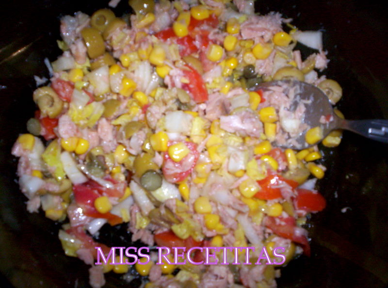 Preparamos todos los ingrediente que vayamos a echar en la ensalada, cortandolos lo mas pequeñitos que podamos en un bol y mezclandolos todos muy bien, salpimentamos.