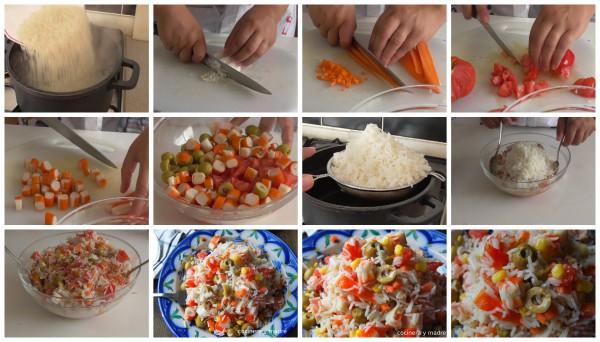 Dejamos que se enfríe bien nuestra ensalada de arroz fácil y fresca y servimos.