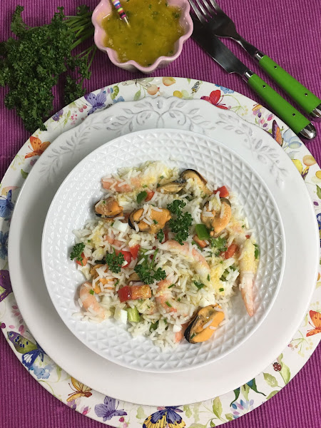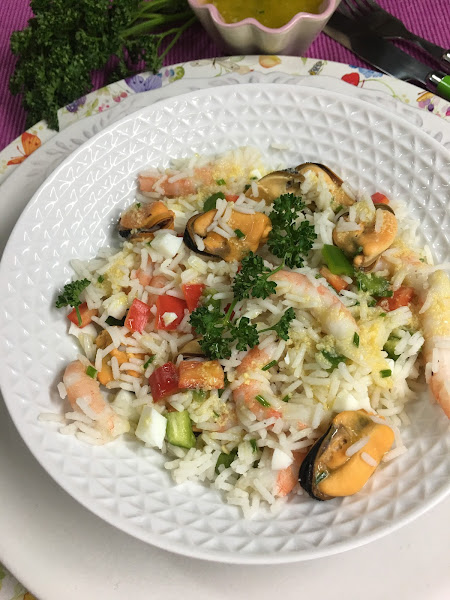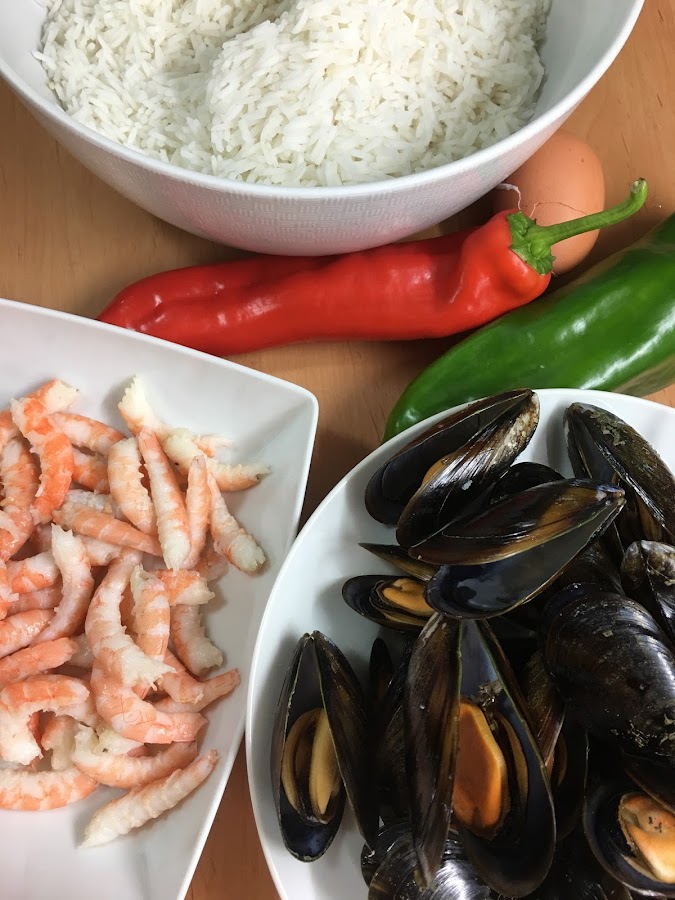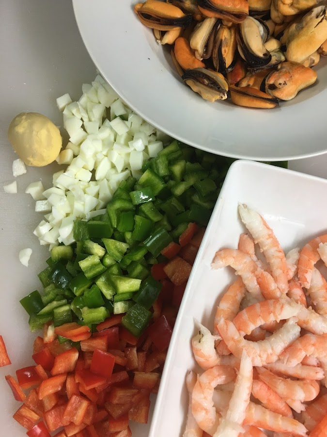 Si no tienes ganas de limpiar y cocer los mejillones y las gambas (no se tarda mucho, pero entretiene un poco), puedes comprar los frutos de mar ya cocidos en el supermercado, te ahorrarás un montón de tiempo y el resultado será igual de bueno.
