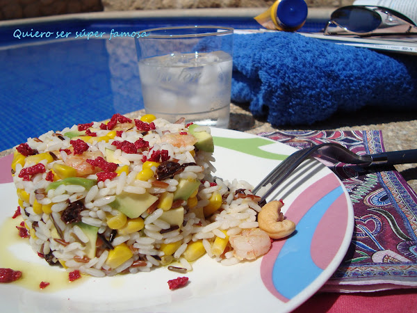 Lo mismo digo de los aguacates y el maíz. Es fundamental que el primero esté en su justo punto de maduración y que tenga sabor; los cogen verdes y luego da lo mismo ponerlos que no. El maíz que esté llenito y no sea una simple cáscara amarilla. Así que toca comprar una buena marca. Las pasas por supuesto sin semillas y las gambas, aunque son congeladas, que no parezcan de corcho. Ya sabéis que hay de todo en el mercado.