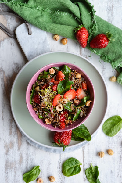 RECETA DE ENSALADA DE ARROZ SALVAJE Y FRESAS CON VINAGRETA DE ARCE