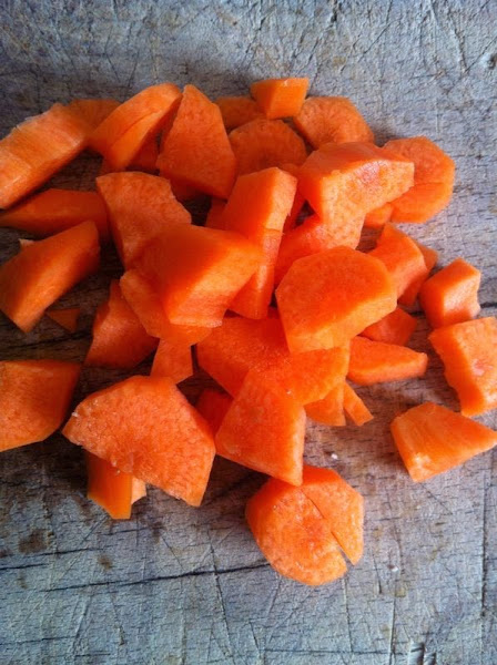 La zanahoria y la cebolleta las pelaremos y picaremos.